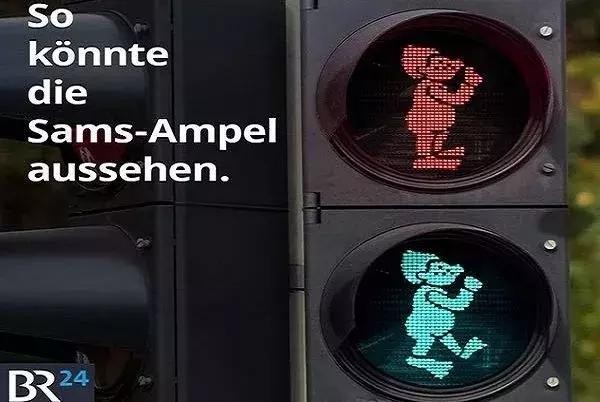 德國城市班貝克為了紀(jì)念德國少年兒童文學(xué)作家、插畫師、翻譯家以及班貝格生活編劇—— 保羅?馬爾,把紅綠燈小人形象更換成了保羅?馬爾作品中主人公 Sams 的形象。
