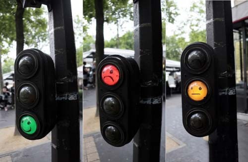 紅燈對應(yīng)的是哭臉,綠燈對應(yīng)的是笑臉,黃燈對應(yīng)的是無表情。